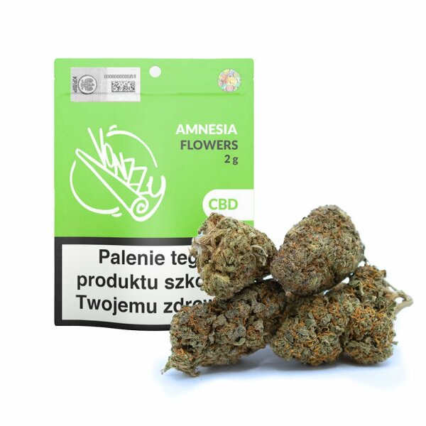 Odmiana AMNEZJA marki Vonzzy to naturalny susz konopny uzyskany z organicznych upraw konopi siewnych. Całe, pulchne topy przeznaczone bezpośrednio do palenia lub waporyzacji – nie powoduje efektów psychoaktywnych (THC < 0.3%).
